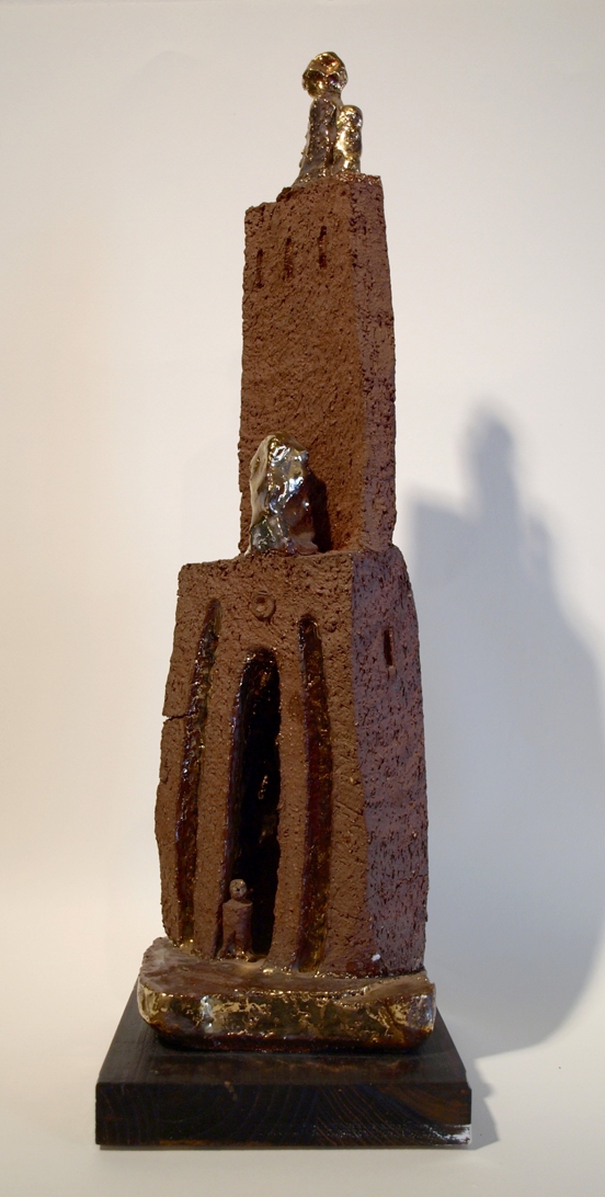 scultura in terracotta dorata