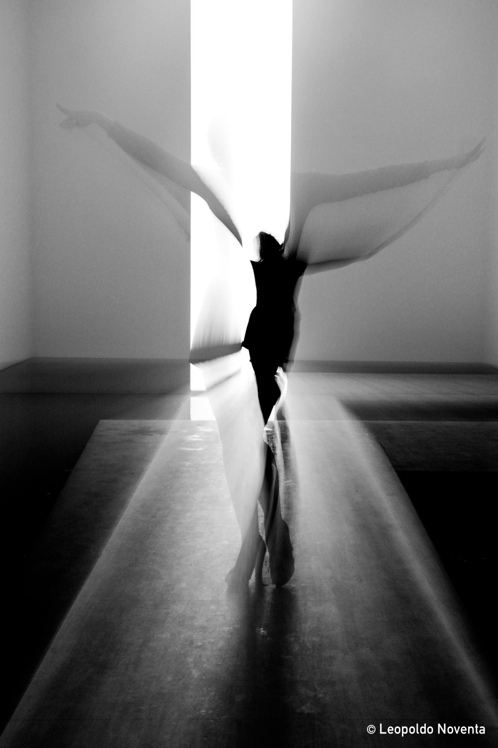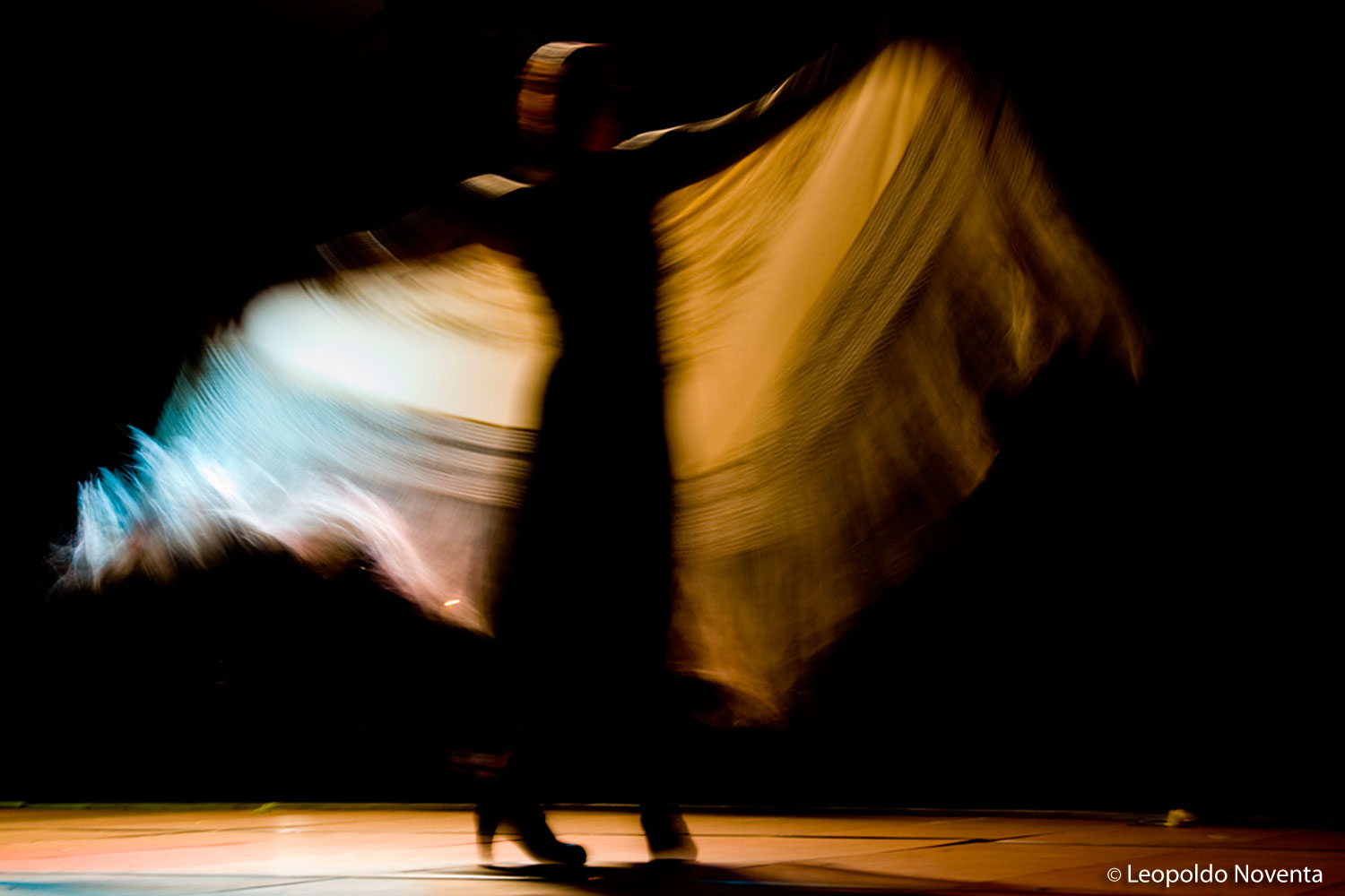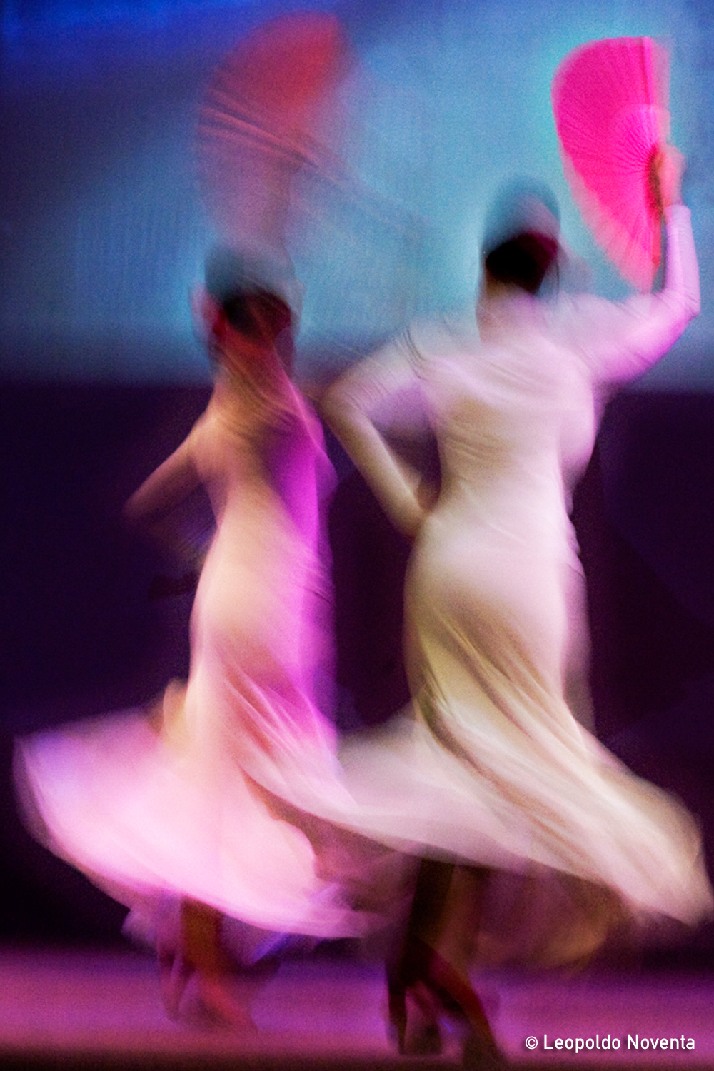 Vediamo immagini, colori, persone, edifici, pienezza e desolazione, fragore e silenzio. Tutto attorno a noi. Chi siamo davvero? Dove viviamo? Le vie, le strade, le piazze che ogni giorno attraversiamo da soli e nel fragore della folla si riflettono nei nostri occhi e si fondono coi nostri pensieri e quello che siamo.Il silenzio è un altro elemento molto importante e presente nella sua fotografia, probabilmente dovuto al desiderio dello stesso di presentare paesaggi, come quelli del Delta del Po, strade e, talvolta, volti umani che emergono dall’ombra, svelando sfumature, luci morbide e atmosfere enigmatiche, sospese e quasi surreali.Leopoldo Noventa, grazie alla collaborazione sviluppata con l’Associazione Faralà – Accademia del Flamenco di Padova, si è lasciato affascinare dal movimento, dalle atmosfere e dalla magia di questa danza tipica spagnola. Le sue foto mettono in risalto le ballerine, le loro espressioni dolci e coinvolgenti, per farci comprendere quanto questa danza e meravigliosa arte nasca dal profondo del cuore. E’ una danza estremamente passionale, che fa pensare al rosso, al vento forte, ad una voce decisa, a quel fuoco che nasce da dentro ed esplode in mille forme e colori.Ha all'attivo numerose mostre fotografiche e collaborazioni con scrittori, poeti, musicisti e gruppi teatrali che gli hanno consentito di sperimentare il connubio tra la fotografia e altre discipline artistiche e letterarie.