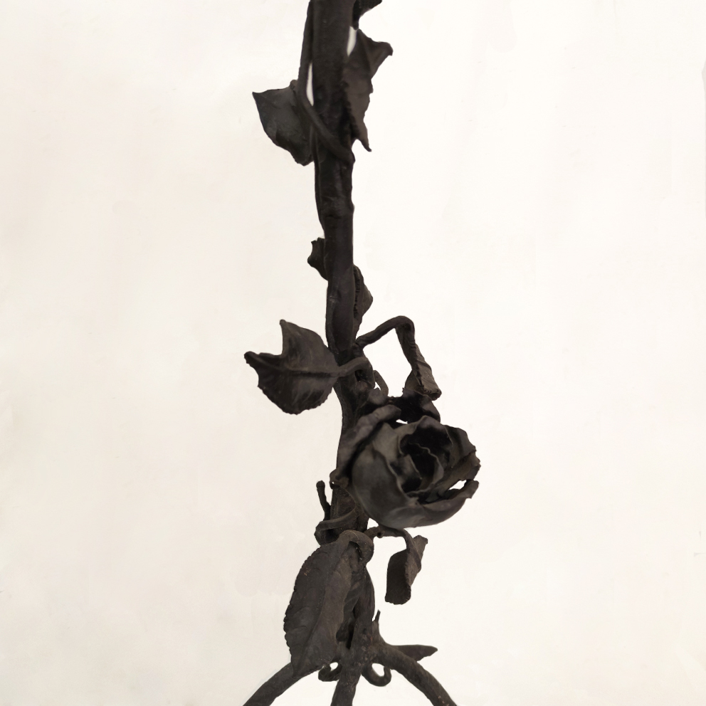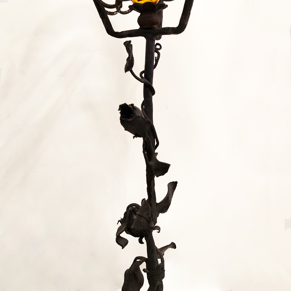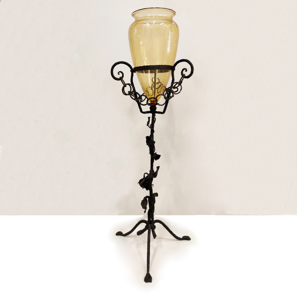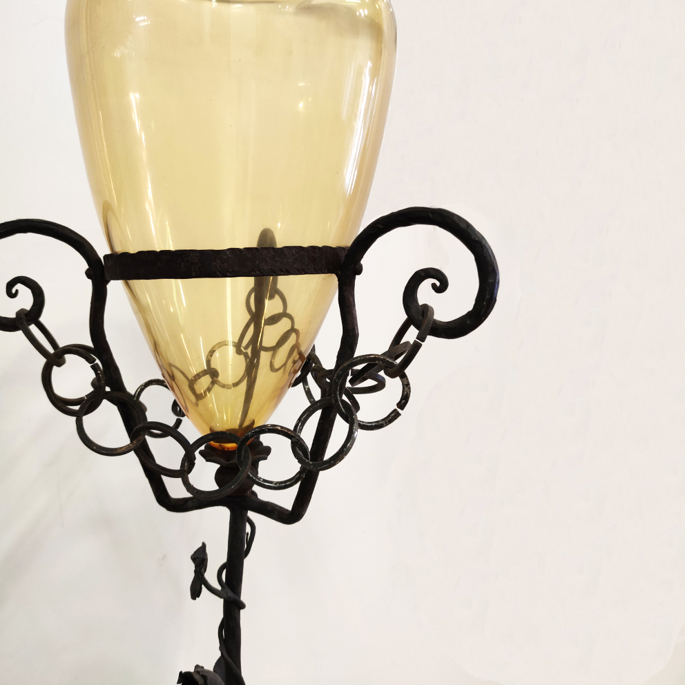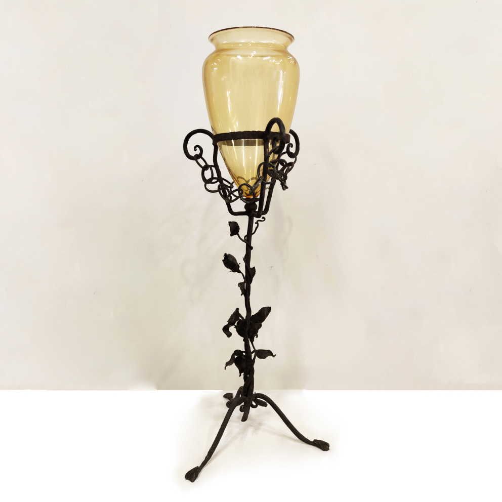 Grande Vaso in vetro paglierino | supporto in ferro battuto | h cm. 110x34| vaso cm. 40 | anno 1930 circa (Bellotto il supporto) e (Cappellin il vetro)